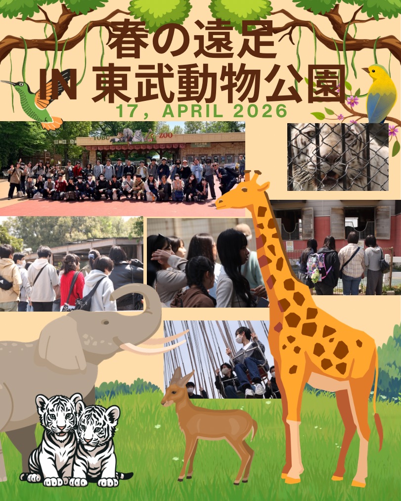 2026年04月21日 入学希望者向け 2・3年生 春の遠足(本校) 2・3年生が、春の遠足に行ってきました。今年の行き先は、東武動物公園です。 広い園内を散策しながら、生徒たちは新しいクラスメイトと親睦を深めることができました。
