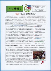 毎月、発行している学校便り『日々輝便り』。5月号を発行しましたので紹介いたします...