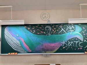 入学式の翌日、1年生の各教室にはちょっとした仕掛けがありました。恒例の『黒板アー...