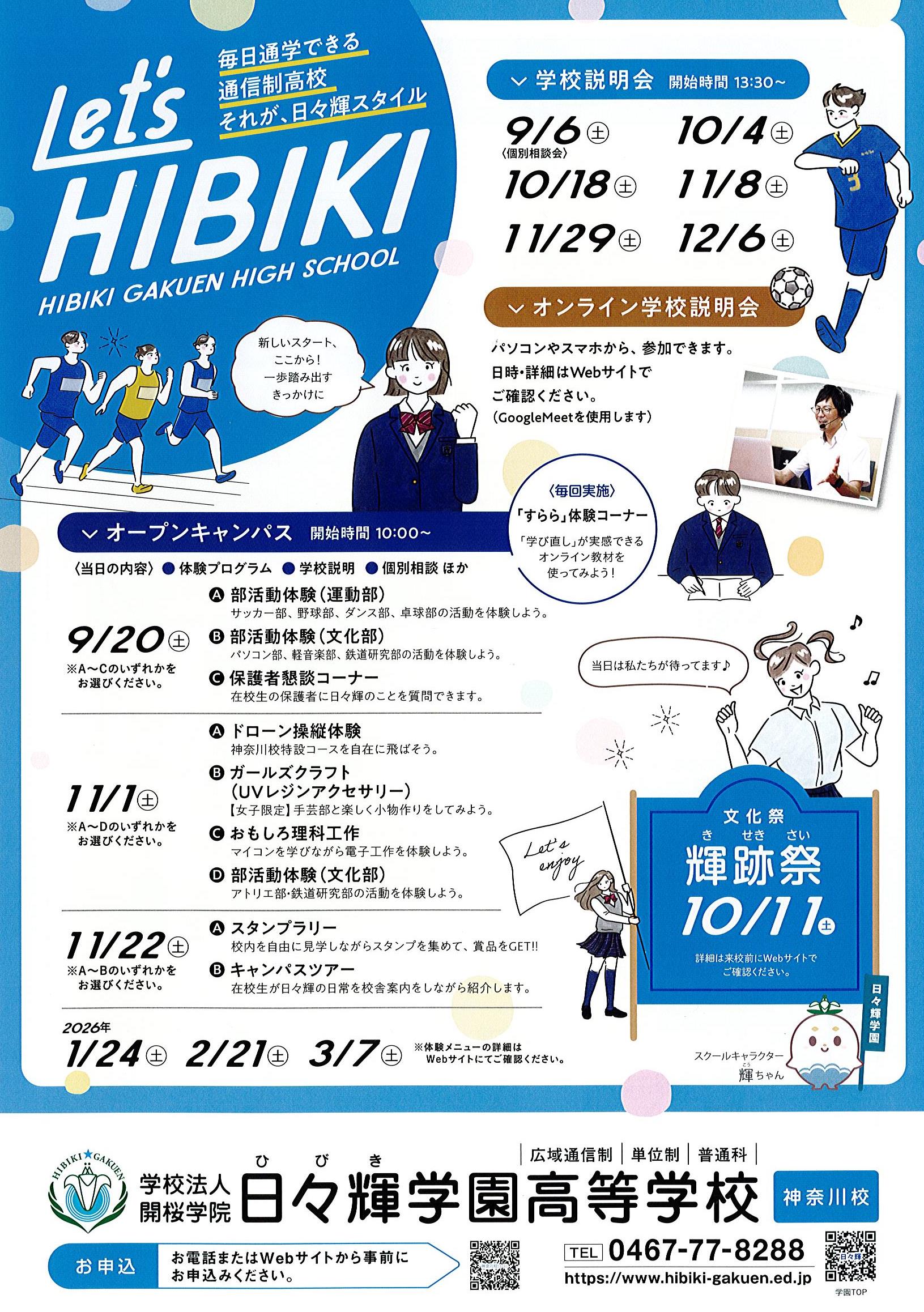 2025年10月18日 入学希望者向け 10/18(土)・学校説明会を実施します(神奈川校) 10/18更新・10月18日(土) 13:30~ 学校説明会 本日、13時30分より学校説明会を開催いたします。中学生の皆様、保護者の皆様、どうぞ気をつけてお越しください。