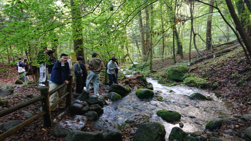 初日は、開校式に続き、尚仁沢湧水群散策、ユニカール体験、異文化交流体験、福祉体験の4つのメニューに分かれ、楽しく有意義なひと時を過ごしました。