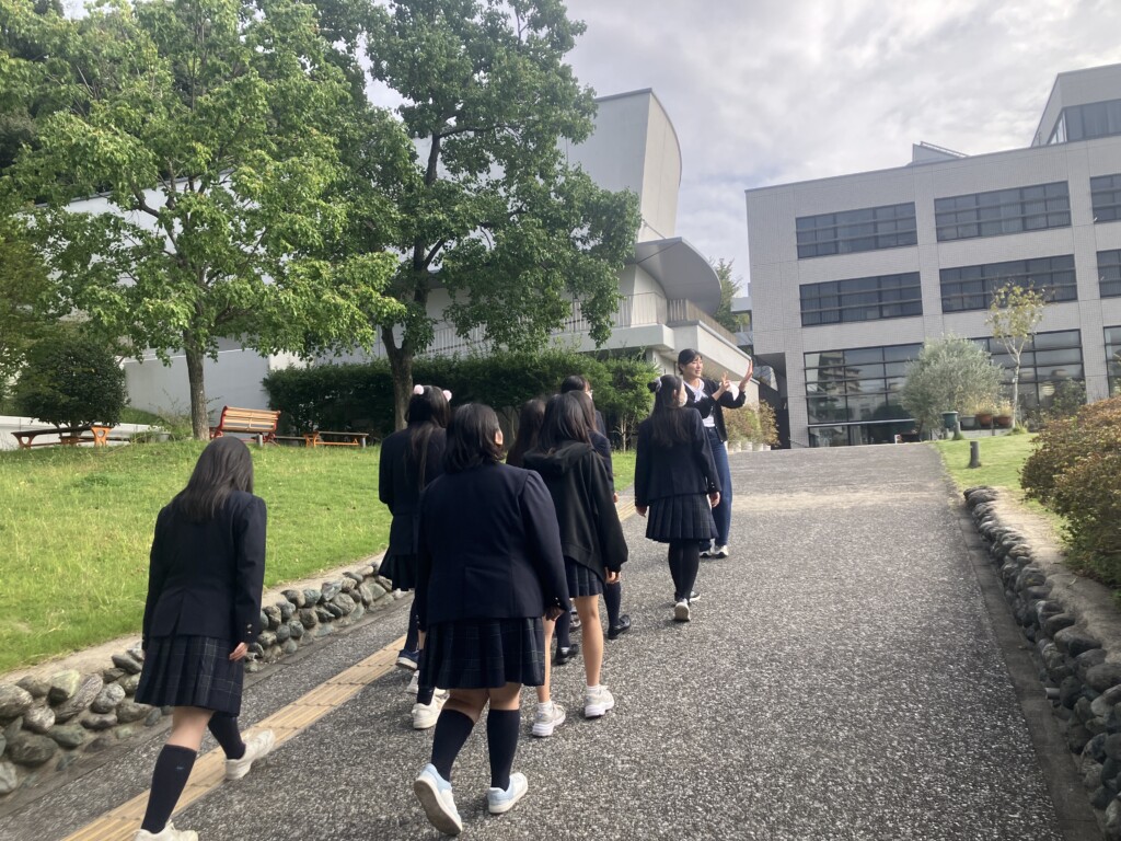 今年度から高大連携の協定を締結したフェリス女学院大学。今回、2年生の女子生徒をおもな対象として、連携授業や大学見学を実施しました。写真を見ておわかりだと思いますが、とってもきれいで素敵なキャンパスでした。