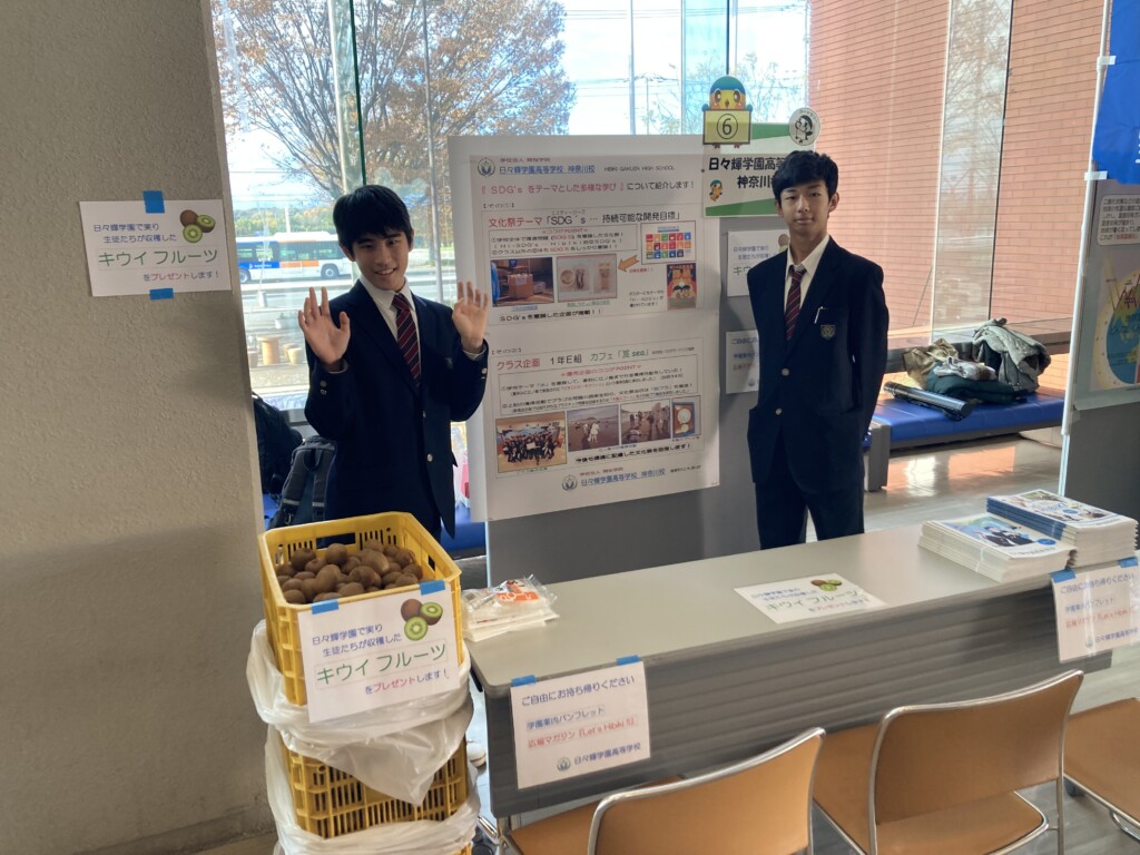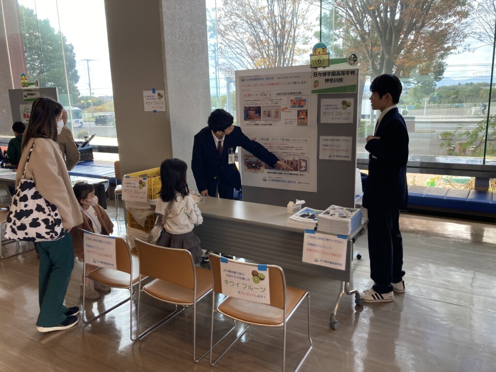 あやせ環境展には、2015年より参加を続けています。コロナ禍に2回の中止がありましたので、今回で9回目の出展となりました。毎回、本校で収穫したキウイフルーツをお配りしています。昨年、美味しかったから・・・と出展ブースを訪れてくださる方もいました。ボランティアで参加した生徒たちでしたが、緊張しながらパネルの内容を説明し、その後、嬉しそうにキウイフルーツをお渡ししていたのが印象的でした。