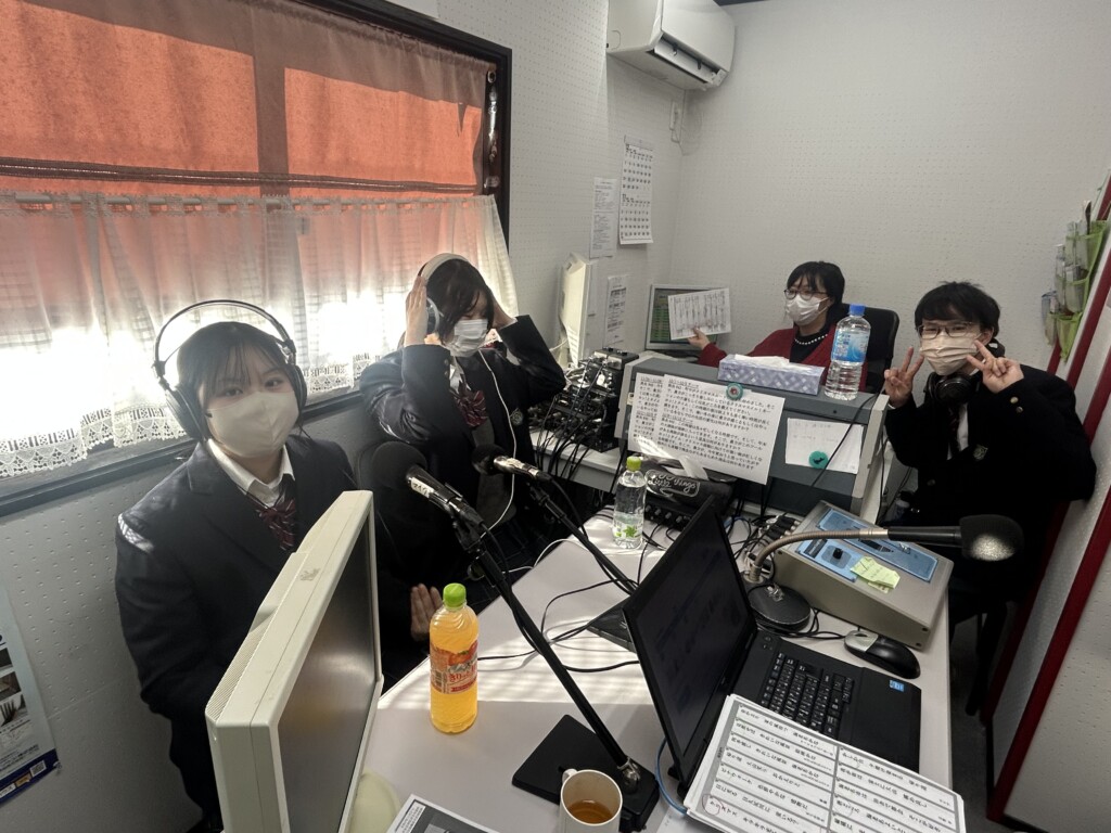 参加した生徒たちはラジオパーソナリティの方にご指導いただきながら、実際の放送を担当しました。緊張しながらOA(オンエア)に臨み、しっかり伝えたいことを発信できたようです。