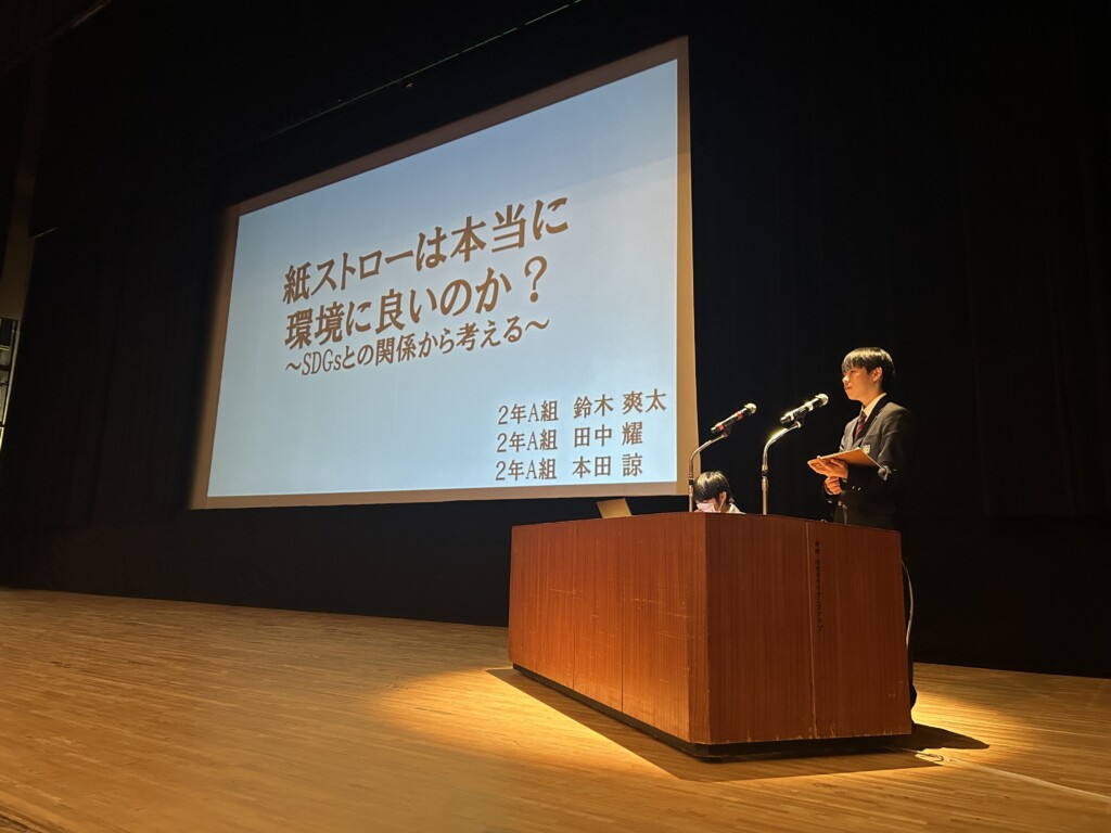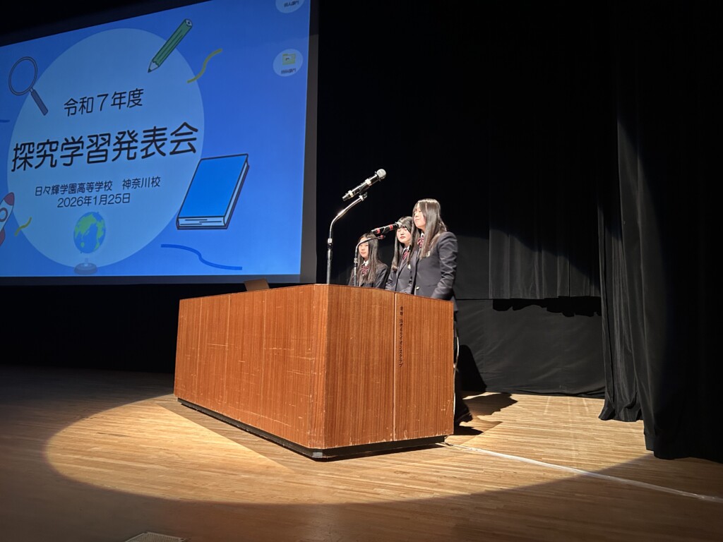 1月25日(日)、海老名市文化会館(大ホール)で探究学習発表会を実施しました。1〜2年生の代表グループや個人が、今年度の探究活動で学習してきた内容を発表しました。