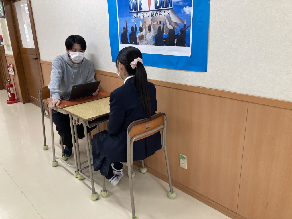 年度末ということもあり、単位認定や進路・コース選択などの話題が多くなりますが、個々の悩みなどを相談するケースもあります。生徒のみなさんには、このような機会を有効活用してほしいと思います。