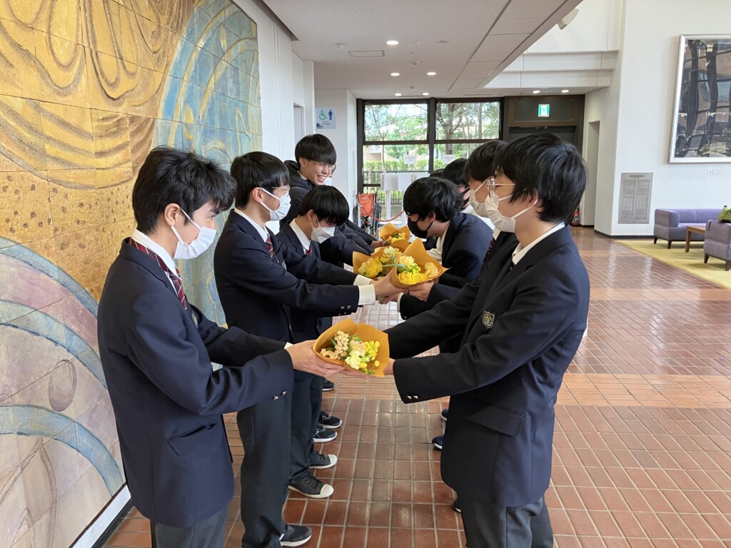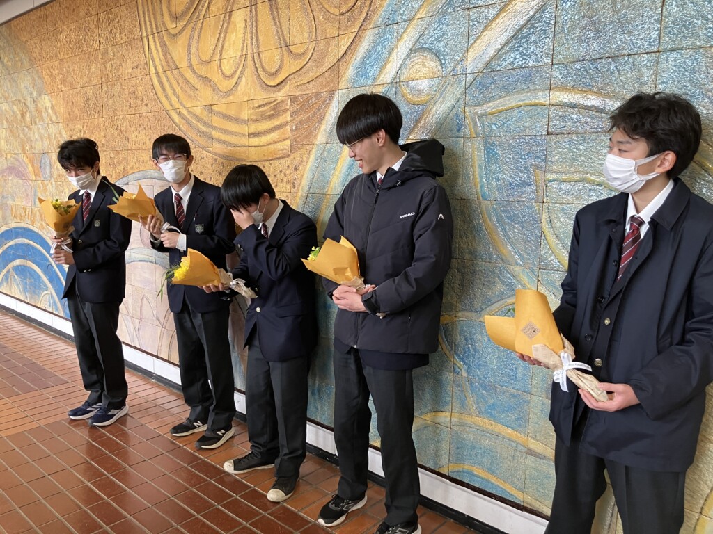 卒業する部の先輩たちへ花束が渡され、卒業生から挨拶等がありました。そして、お別れを惜しみつつ、卒部式は閉式となりました。