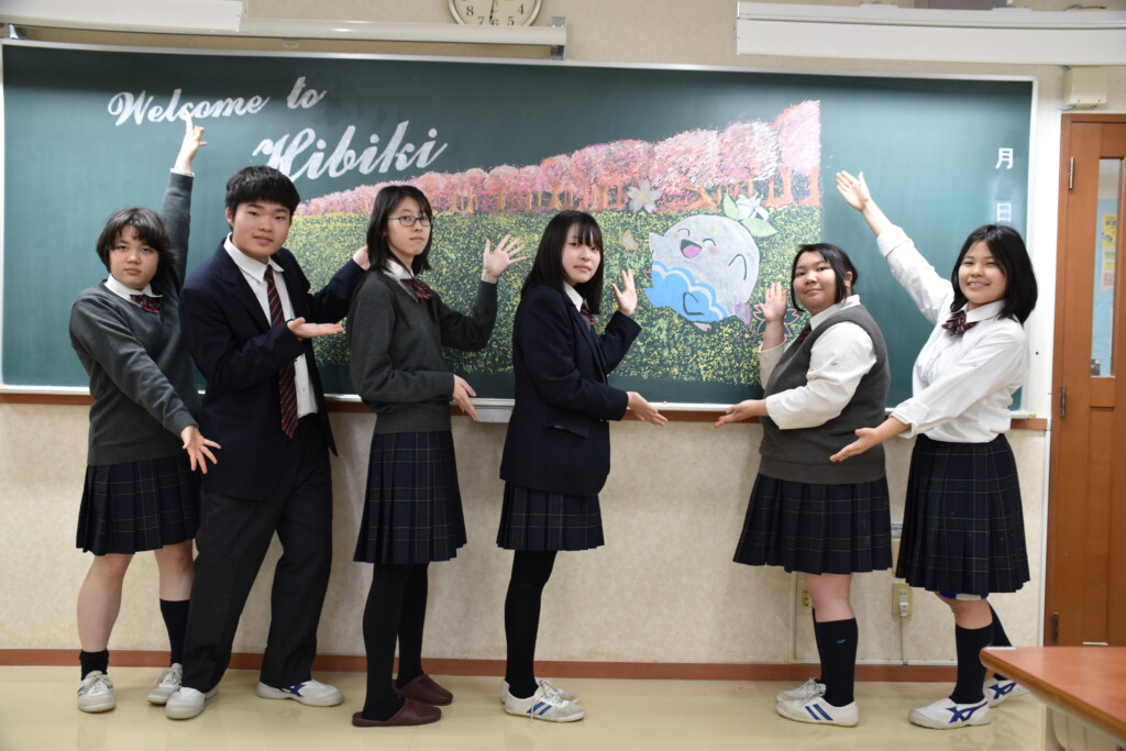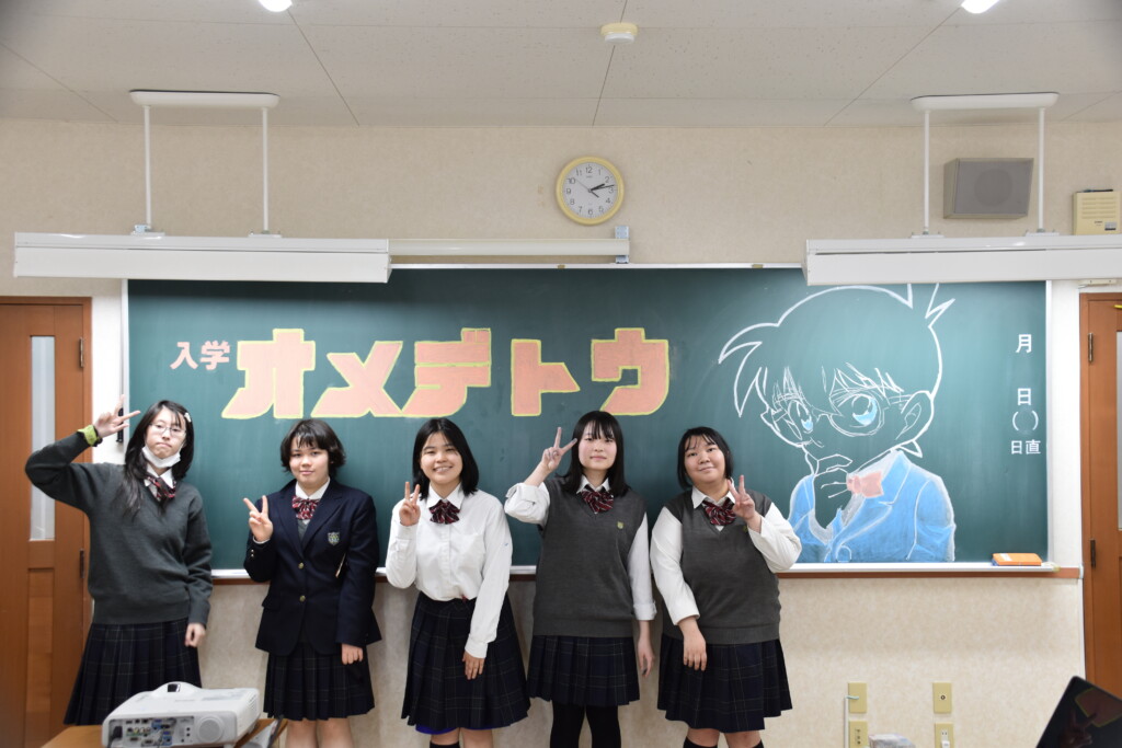 ★こちら(↓)は黒板アートを制作してくれた2〜3年生のみなさんです!!(アトリエ部&生徒会)