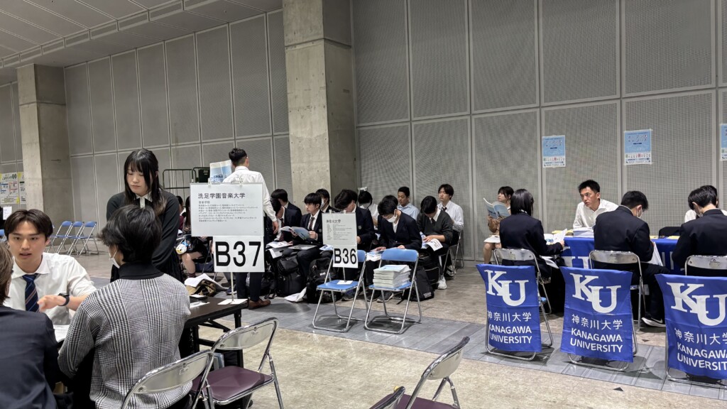 2026年05月01日 入学希望者向け 2年生・進路フェスタへ行ってきました(神奈川校) 5/1更新・進路フェスタでパシフィコ横浜へ!2年生が外部会場で行われた進路フェスタへ参加しました。パシフィコ横浜を会場として、毎年多くの高校生が参加する進路イベントです。それぞれが興味や関心を持つ上級学校のブースを訪問し、進路相談を行っていました。2年生のみなさん、お疲れさまでした。今は、より多くの情報を収集することが大切ですね。 ★生徒のみなさんへ★ 本日(5月1日)、短縮授業(教員研修のため)です。9時15分までに登校してください。