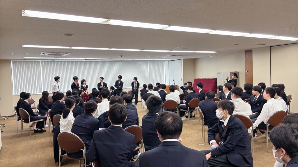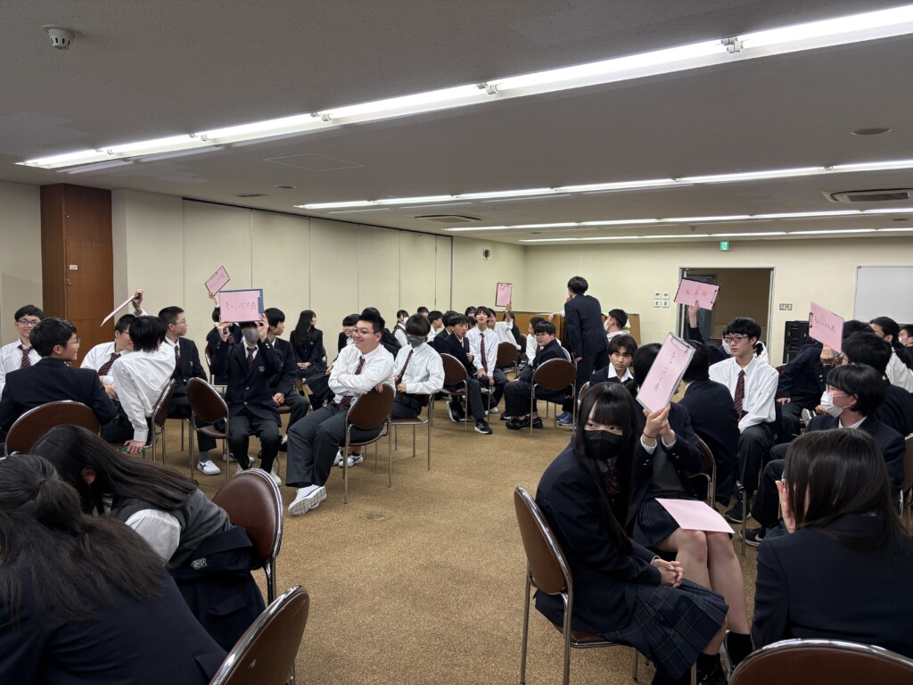 2026年04月28日 入学希望者向け ウエルカムセレモニーを行いました🪅 4月24日(金)に1年生に向けたウエルカムセレモニーを行いました。ダンス部がオープニングを飾り、各部活動、委員会の紹介を行い、1年生にアピールをしました🕺1年生の皆さん、入りたい部活や委員会は決まりましたか?これからしばらく仮入部期間となるので気になる部活があれば是非参加してみてくださいね💪 生徒会紹介💁 生徒会主催のレクも盛り上がりました🙌