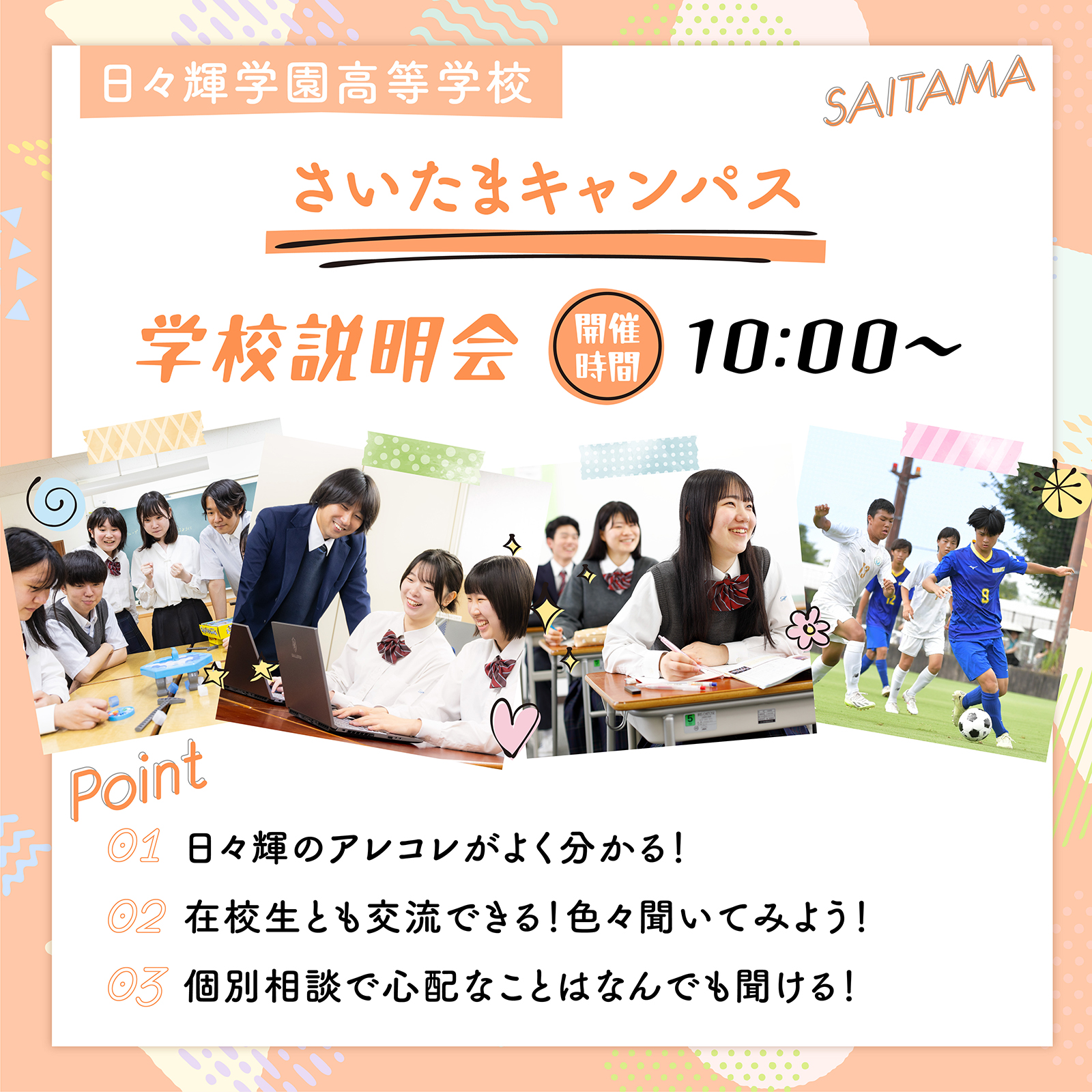ぜひ日々輝学園さいたまキャンパスの学校説明会にお越しください。