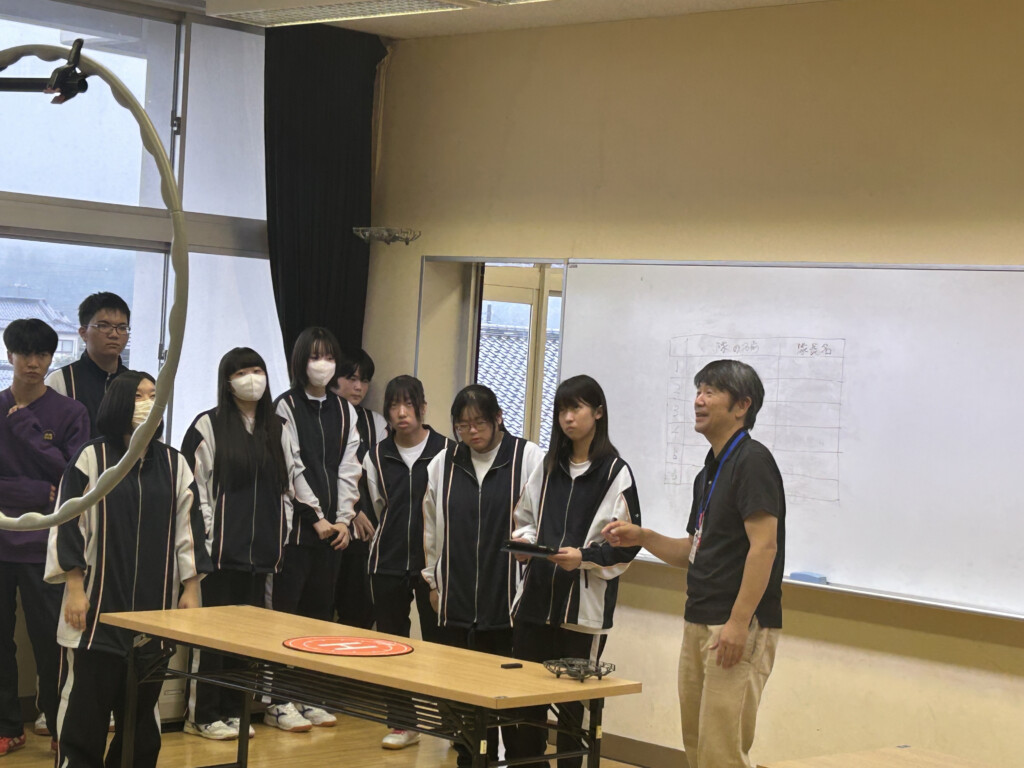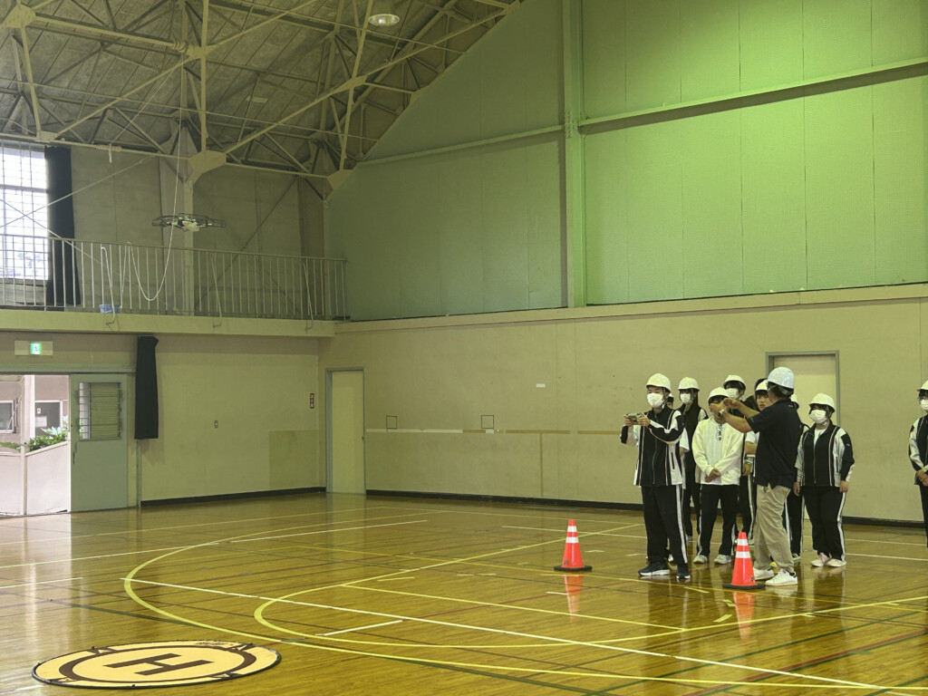 ドローン体験では、ドローンについての講習会、ドローンの操縦、救助ミッションを行いました。緊急時にドローンでどのような情報を集め、どう救助指示をするかについて、グループごとに考えたことの発表を行いました。
