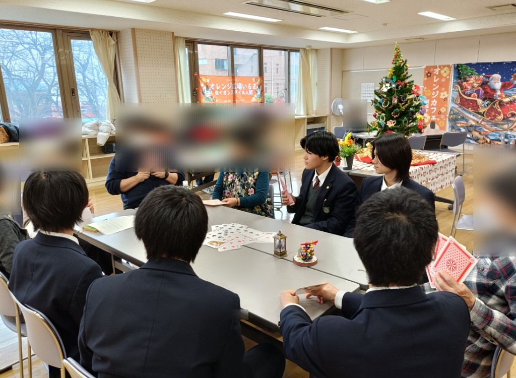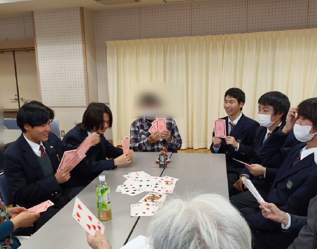 前回の第3弾の動画に続き、今回は、『高校生が認知症のご本人の方たちにお話を聞きに行くため、オレンジカフェに行ってみる』というテーマで撮影をしました。藤沢地区センターに撮影用のオレンジカフェの会場をつくり、高校生たちとチームオレンジいるまの方、認知症ご本人の方と一緒に、トランプでゲームをしながら楽しくお話しをする様子を撮影しました。
