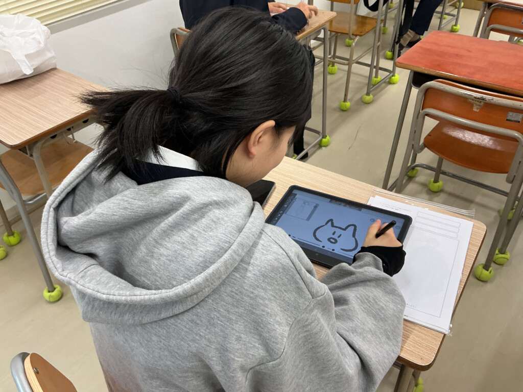 参加生徒は絵を描くのが好きな生徒がでしたが、中にはイラストをほとんど書いたことがないという生徒も参加していました。参加者は全員が1,2年生、これからの進路を考えるうえでの参考にしてもらいたいと思います。