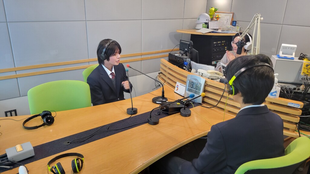 2026年01月31日 入学希望者向け 📻ラジオ出演📻ボランティア報告会告知 今日は、地元ラジオ「FMチャッピー」さんにお呼ばれされて、今回は、2月に行われる地域と学校と連携して取り組んできたSDGsの活動報告会の宣伝を行いました! 今回、ラジオに出演したのは、1年生のときから、この取り組みに参加し続けた3年生です! 3年間の活動や学校生活の思いを語ってくれました。