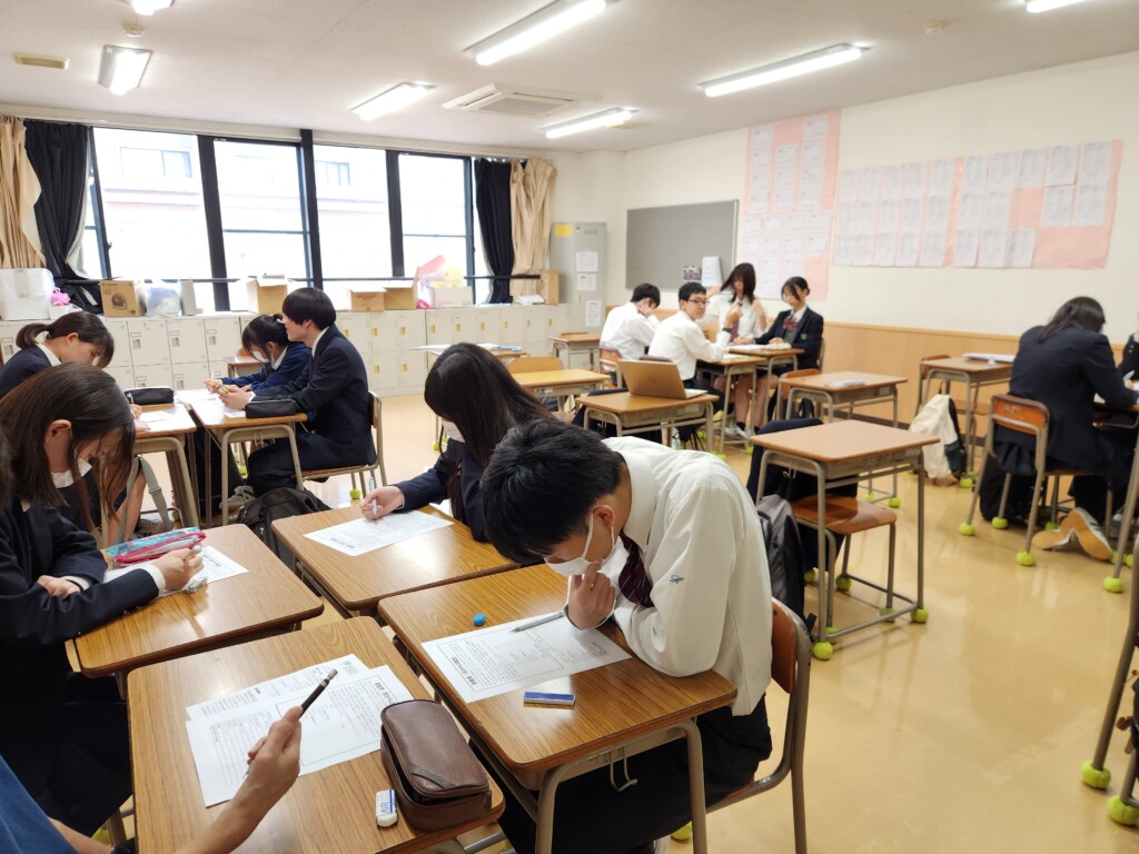 1年生は10月末に実施される宿泊行事の体験学習に向けてオンラインで学年集会を実施、2年生はエンカウンターを実施しクラスメイトと協力して他者理解の時間としていました。3年生は学園祭の振り返りと残りの学校生活をどのように過ごしていくのかについて考える時間としていました。