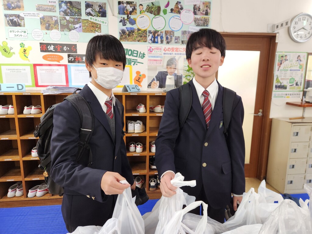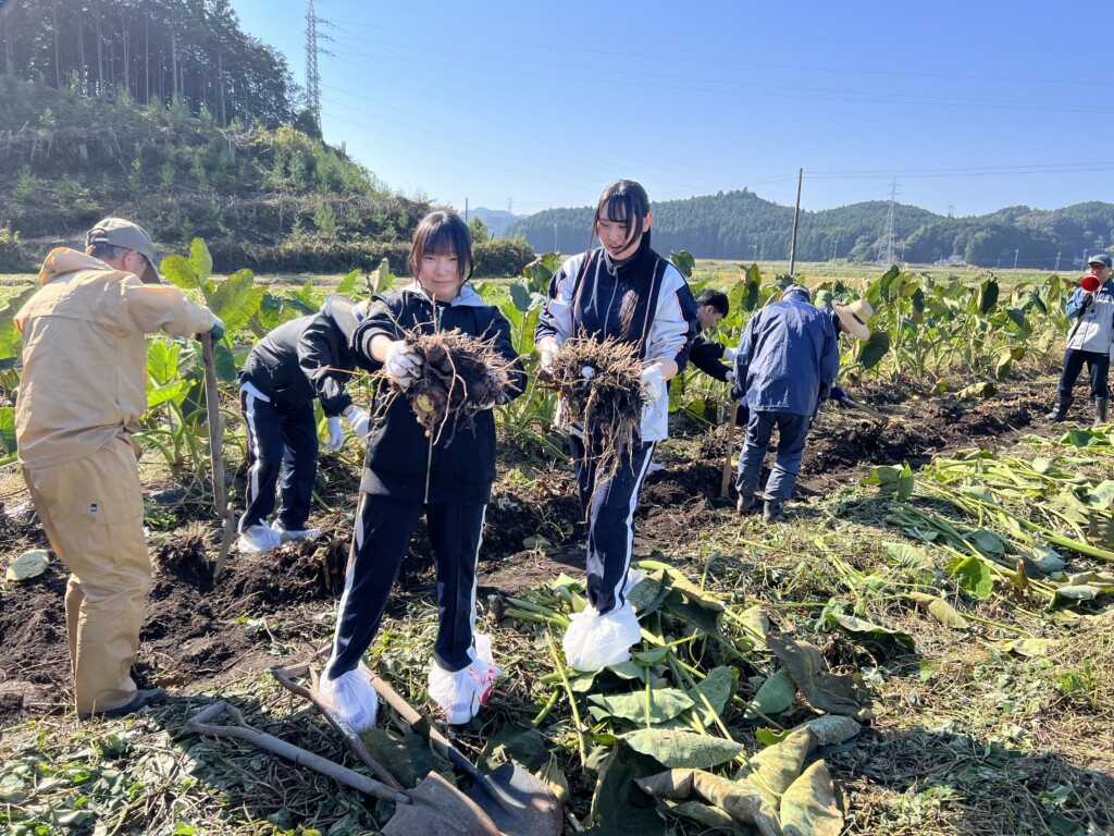 2025年11月07日 入学希望者向け 1年生体験学習のお土産です(横浜校) 先日行われた1学年の体験学習で栃木県塩谷町の本校に行き、里芋の収穫をしました。たくさん収穫することができたので、農作業体験をした生徒以外にもお土産として配りました。本校の生徒のみなさんと技能員のみなさんが日頃から作物のお世話をしてくれていたおかげで、立派な里芋を収穫し、持ち帰ることができました。感謝の気持ちを忘れずに、おいしくいただきたいと思います。