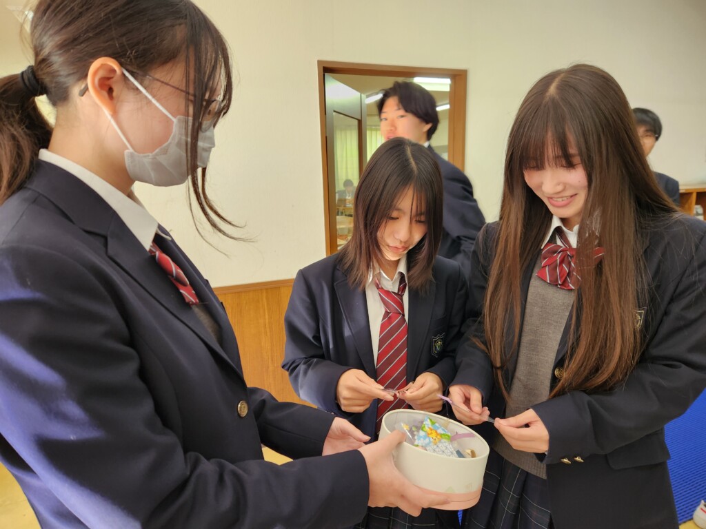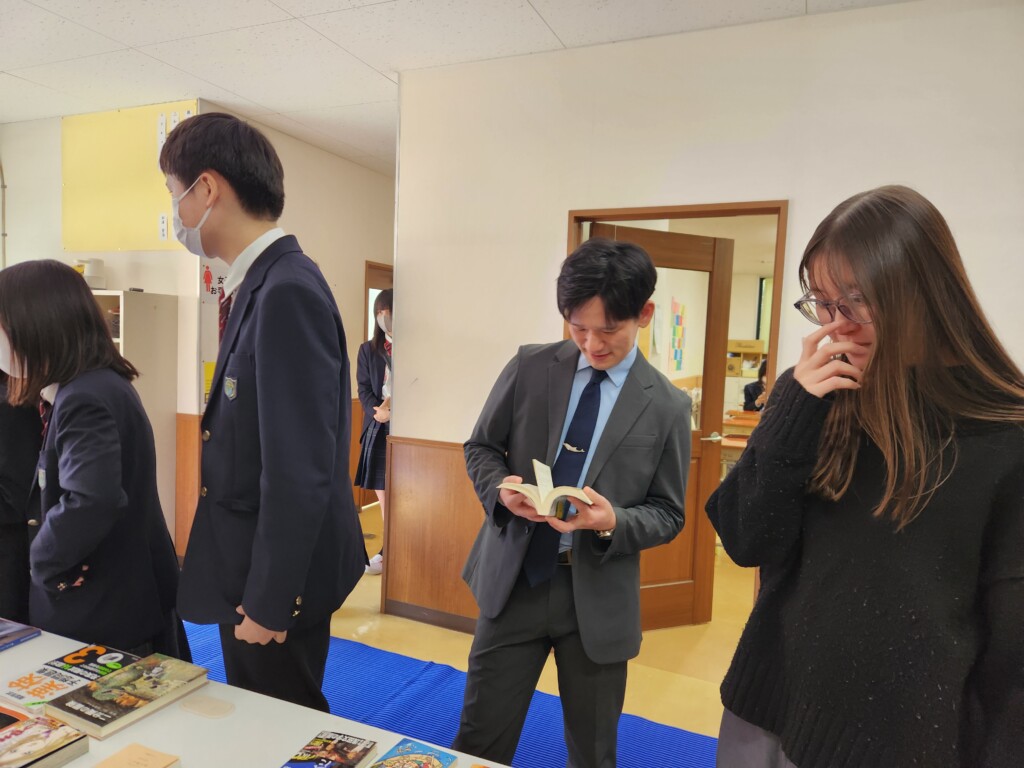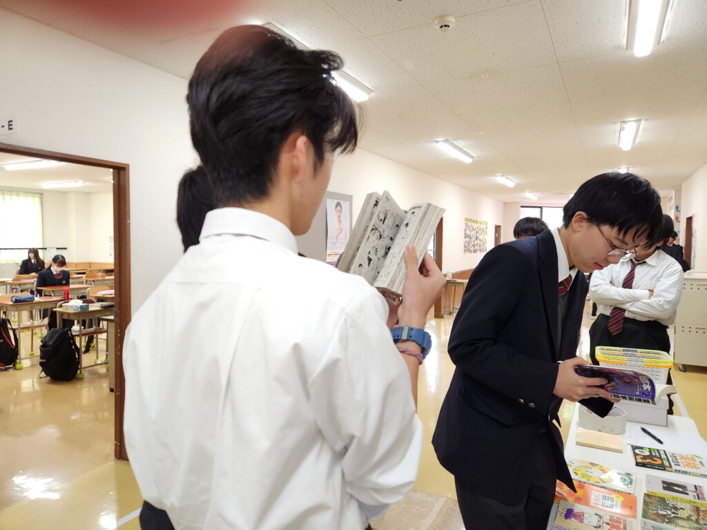 当日は、図書委員の呼びかけに足を止め、本を手に取ったり、図書委員に読みやすい本を尋ねたりと興味をもつ生徒や職員の姿がみられ、3日間の期間中に70名程度の人が訪れ、10冊の本が寄付されました!!訪れた人には手作りの栞がプレゼントされていました。