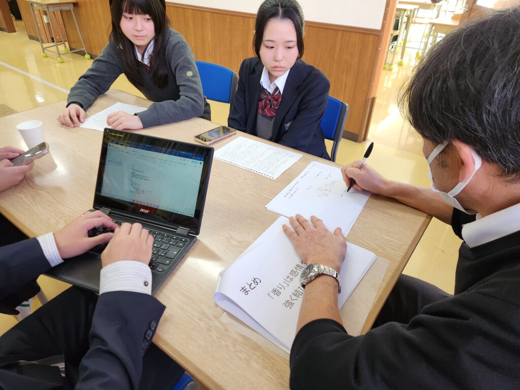 現在、校舎内では各グループがテーマを設定し、担当の先生たちと発表の準備をしています。この日は、調査のために実施したアンケートの集計や取材した内容を共有してまとめるといった活動がみられました。学習発表会まであと1か月程です。残りの時間をうまく使い、良い学習発表会になるよう引き続き準備を進めてほしいと思います。