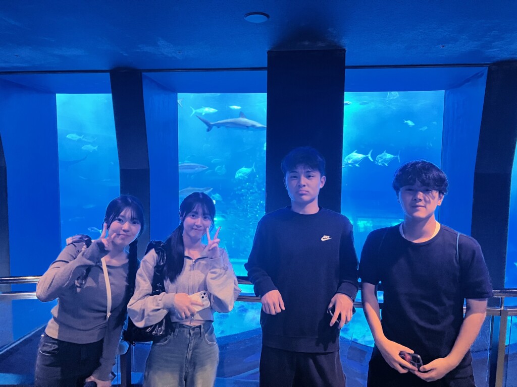 グループごとに見学し、沖縄の海の綺麗さや大きなジンベイザメに感動している様子が見られました。イルカショーも見ることができ、歓声があがっていました。