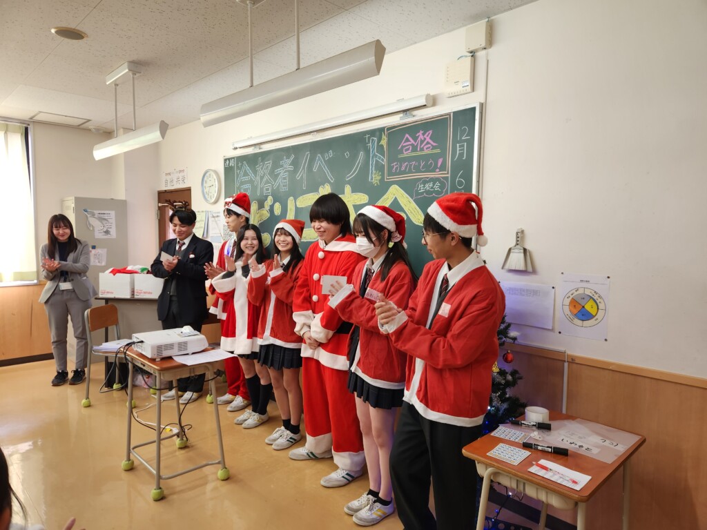 2025年12月24日 入学希望者向け クリスマスイベントを行いました(横浜校) 12月6日(土)に推薦入試の合格者を招き、クリスマスイベントを行いました。 毎年恒例のイベントで、生徒会が中心となって合格者に楽しんでもらうための企画を考えます。この日も豪華景品がもらえるビンゴ大会で大いに盛り上がっていました!今後も推薦入試に合格したみなさんに向けた企画を用意していますので、楽しみにしていてくださいね♪メリークリスマス☆