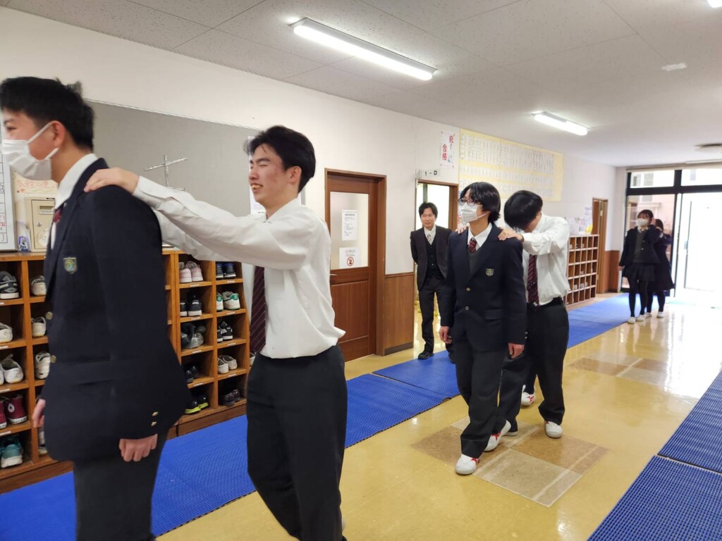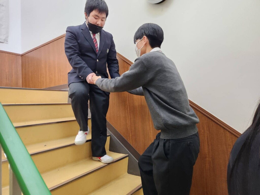 2026年02月02日 入学希望者向け 1年生 エンカウンターを実施しました(横浜校) 先日、1年生のLHRでは、エンカウンター「ブラインドウォーク」を行いました。このエンカウンターは「目隠し歩き」とも呼ばれ、信頼体験や視覚障害者の立場や援助の仕方を体験するために、広く行われているものです。 二人組になり、一人は目隠しをもう一人は段差に注意しながら誘導しました。 今回のエンカウンターから、相手の気持ちを考え、思いやりのある行動をすることの大切さを学ぶことができたのではないでしょうか。今後の学校生活に活かしてほしいと思います。