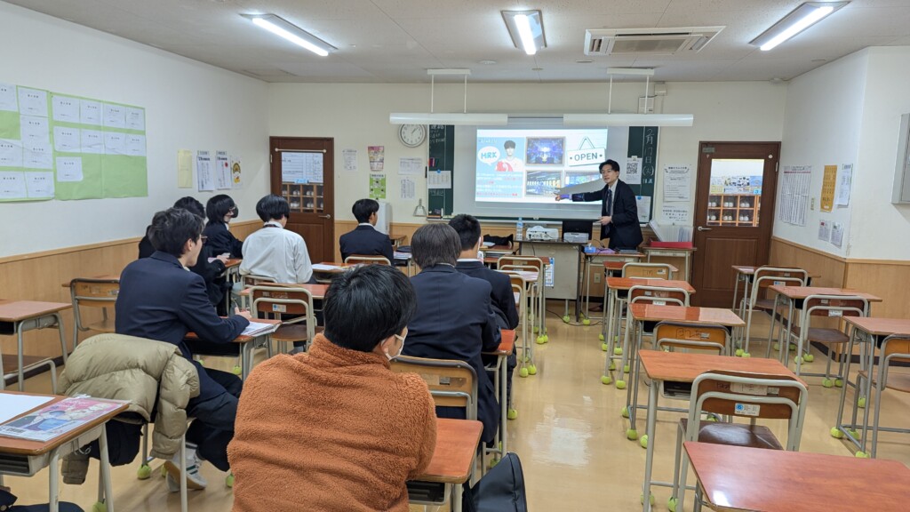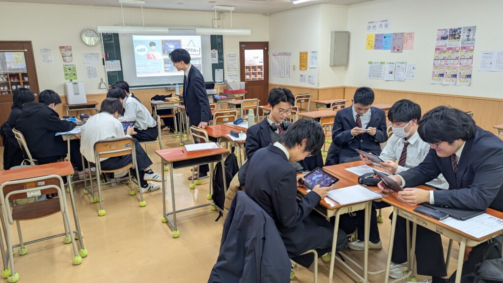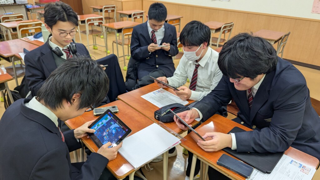 パソコン部がスマホゲームブロスタの勉強会を開きました。今回はeスポーツのコースがある専門学校、中央美術学園の先生にお越しいただき、講義をしていただきました。