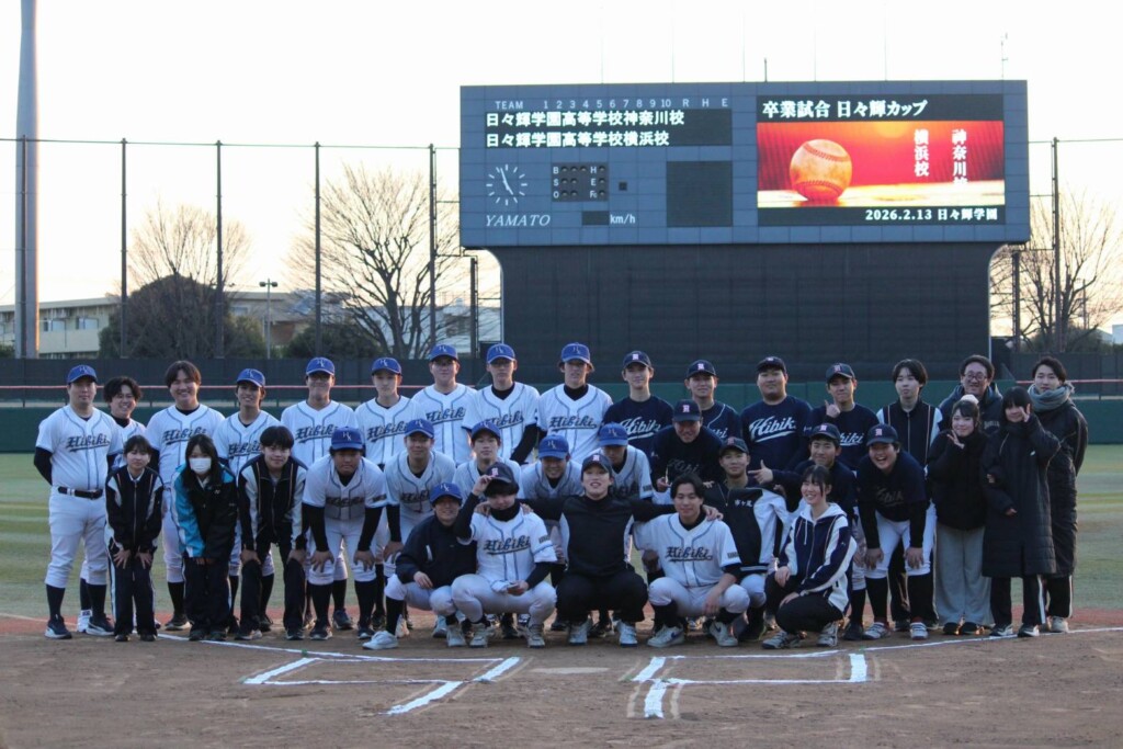 2026年02月18日 入学希望者向け 野球部 卒業試合を行いました(横浜校) 先日、野球部が神奈川校と合同で卒業試合及び合同練習を大和スタジアムで行いました。 マネージャーも含めた部員全員で楽しい雰囲気の中、試合と練習を行い盛り上がったようです。卒業を控える3年生は、この日をもって引退となります。3年間お疲れさまでした。卒業してもまた部活にもぜひまた遊びに来てくださいね。