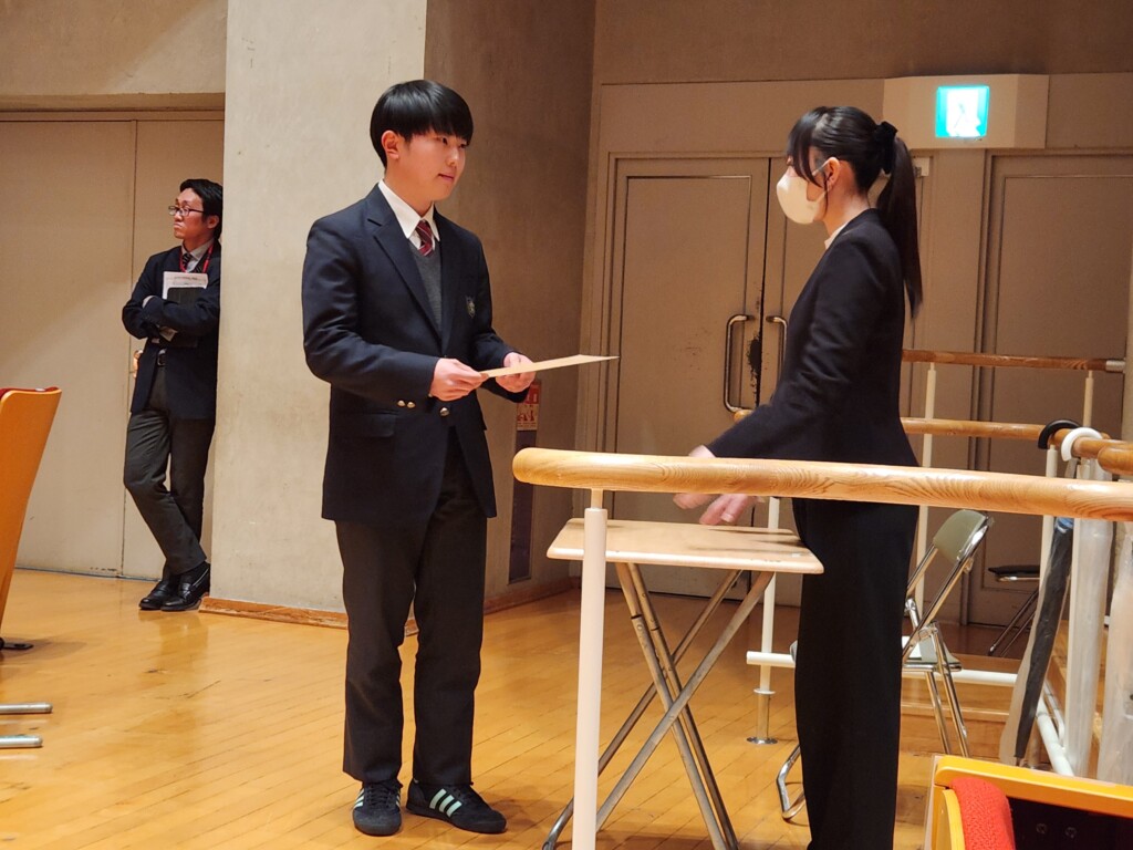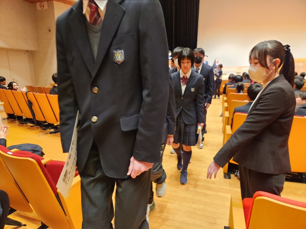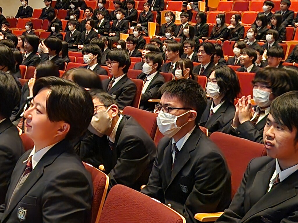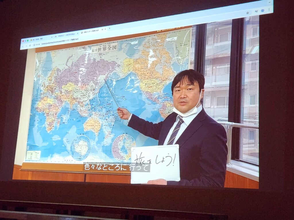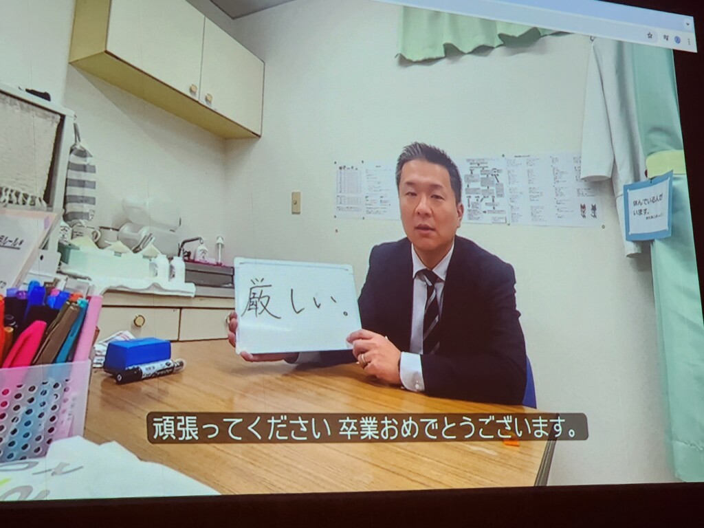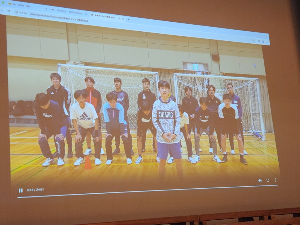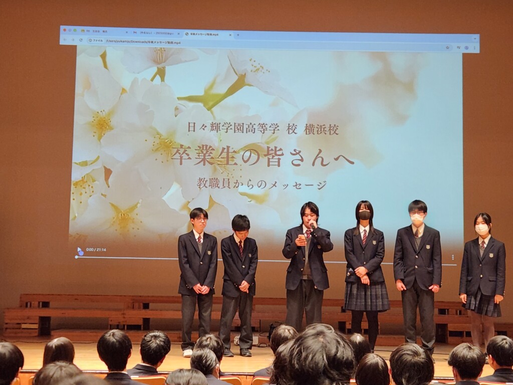 予行終了後には、生徒会役員が作成した卒業生へのメッセージ動画が上映され、部活動の後輩や教職員から卒業生へお祝いのメッセージが送られました。