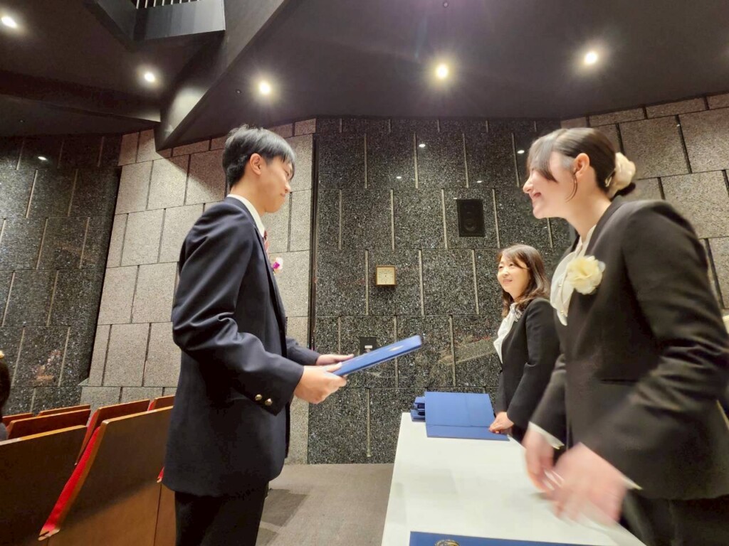 卒業生は少し緊張気味な表情で一人ひとりがしっかりとした姿勢と態度で証書を受け取っていました。緊張の中にも笑顔で受け取る姿が印象的でした。