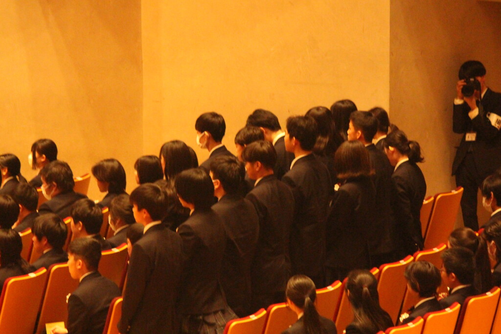 会場に到着した新入生のみなさんは、緊張した面持ちでしたが、式が始まり担任から一人ずつ呼名されると、元気よく返事をする立派な姿を見せてくれました。