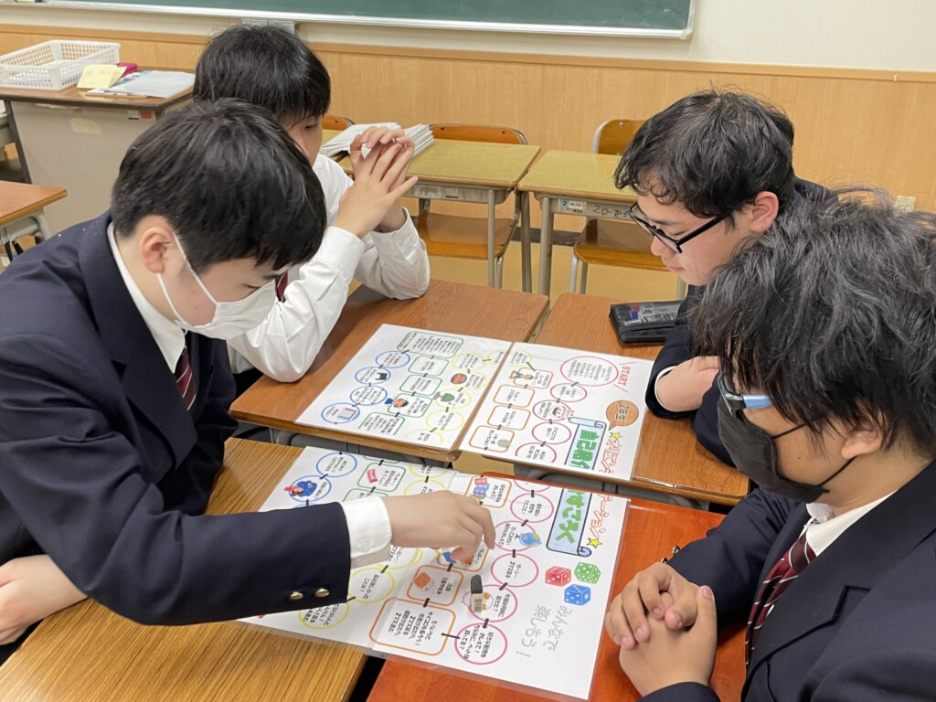 2年生は、クラス替えをして担任やクラスメイトが変わりました。そのため、自己紹介を兼ねたエンカウンターのすごろくを行い、新たな人間関係を築いていました。
